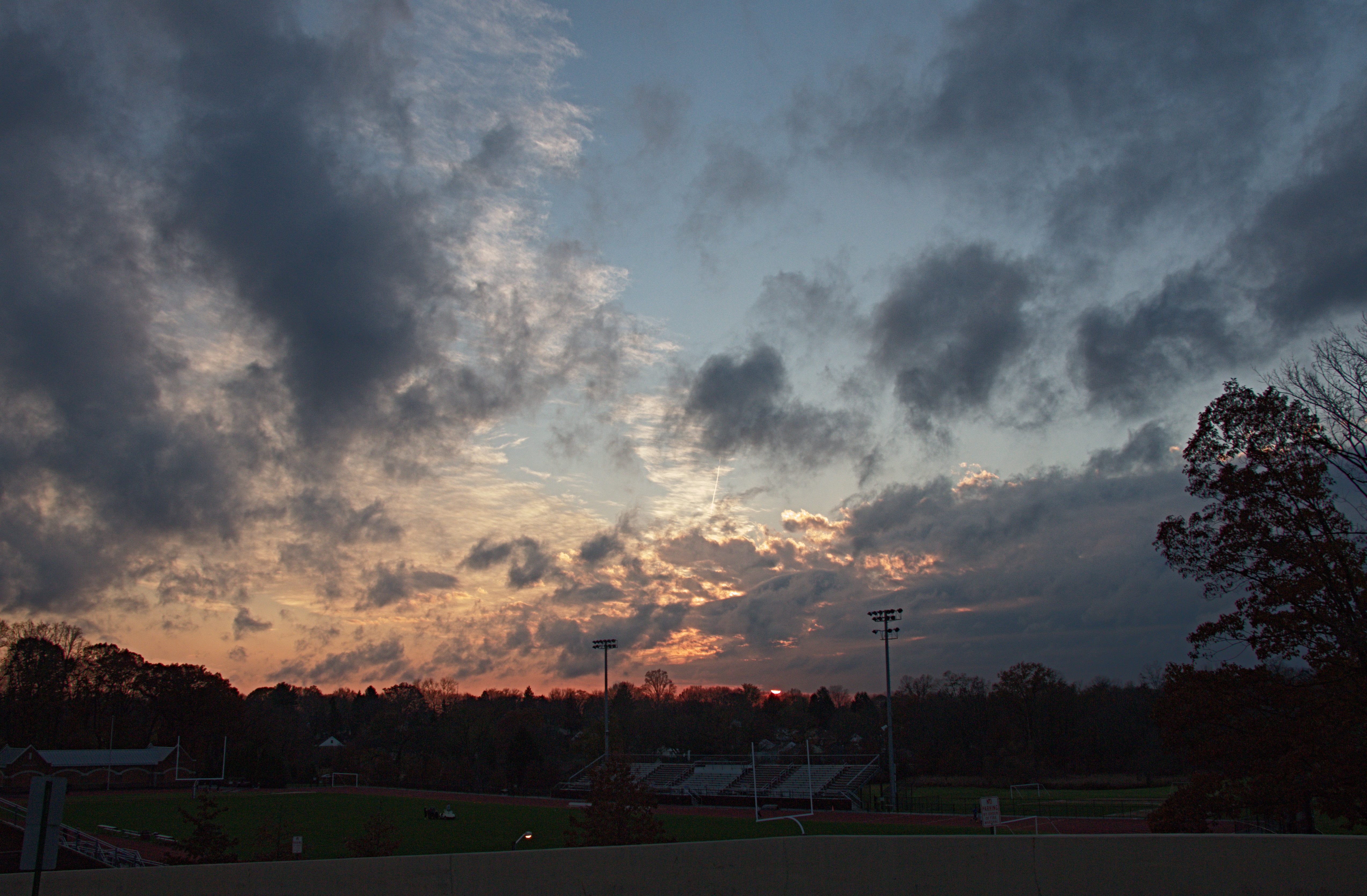 Today’s Abington sunset 12 Nov 2015 ~ cogiddo Shot from the high school grounds. While decent, this is not the best location for sunset photography near our house: as you can see the trees and stadium lights are obstacles. Share this: Click to share on X (Opens in new window) X Click to share on Facebook (Opens in new window) Facebook Like Loading... Related Published by cogiddo View all posts by cogiddo